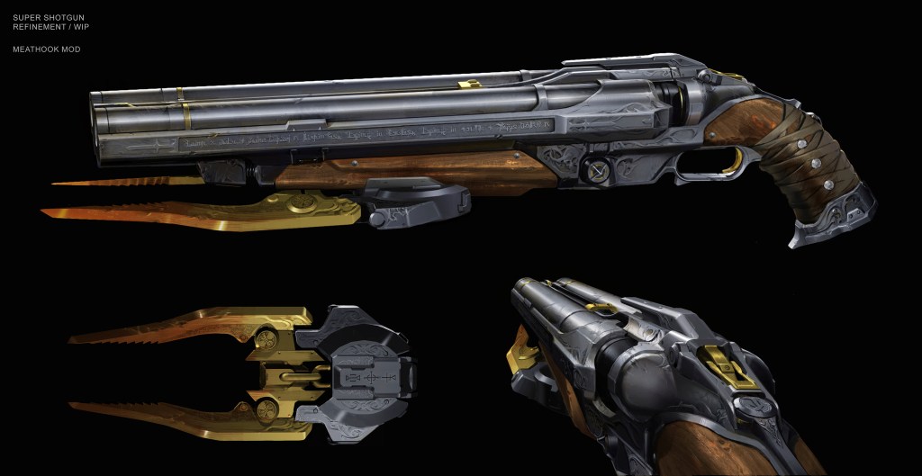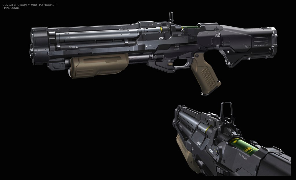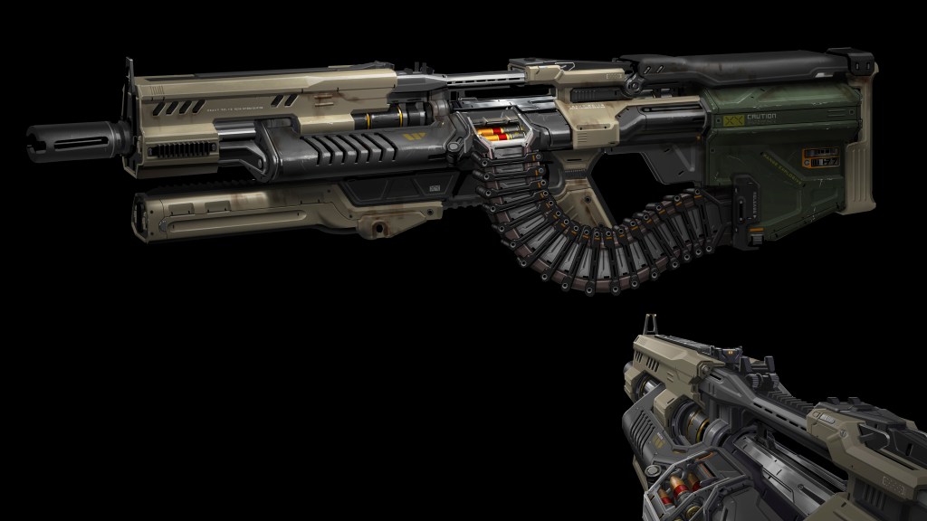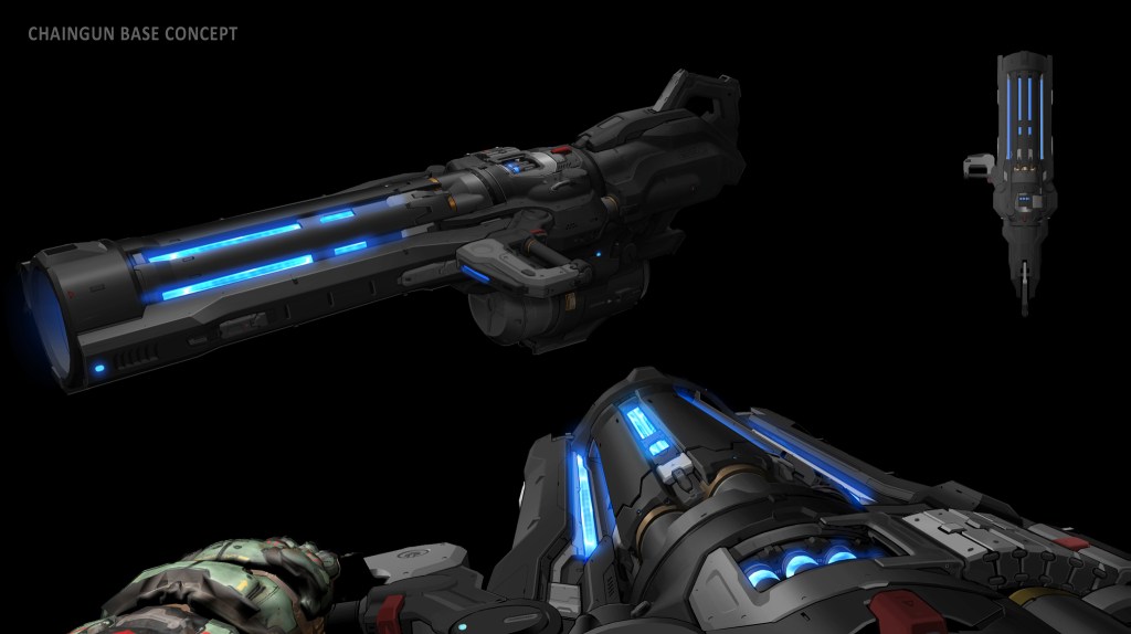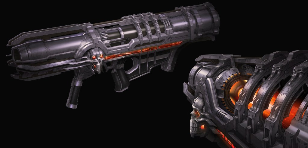 Il processo di sviluppo del cannone pesante ha rappresentato una sfida entusiasmante. Creare un’arma umana originale e unica ha richiesto un lavoro molto approfondito. Alla fine, però, ritengo che i nostri sforzi siano stati ripagati, e che l’arma offra un contrasto molto interessante con quelle più aliene. – Colin GellerQuesta è stata la prima arma che ho avuto l’opportunità di progettare per DOOM Eternal. È stato un lavoro entusiasmante, dal momento che era un’occasione per infondere un nuovo stile a quest’arma molto classica. Sia in termini di forma che di funzione, abbiamo voluto allontanarci dal concetto di un altro “oggetto a forma di tubo che fa BOOM”. – Colin GellerPer quest’arma, l’obiettivo era mantenere il look fortemente industriale della versione 2016 della mitragliatrice aggiungendo al tempo stesso degli elementi fantascientifici “esagerati”. Ho realizzato tutto ciò integrando forme più organiche di superfici solide e aggiungendo delle luci energetiche intorno alla canna e al nastro delle munizioni. Volevo che quest’arma, sparando, si illuminasse come un albero di Natale. -Bryan FlynnIl mio compito in questo caso era di adattare il BFG alla visuale in prima persona mantenendone intatta la vecchia base. Per questo nuovo aggiornamento mi sono ispirato ai motori e alle motociclette. Ho osato abbastanza, in termini di design, includendo forme organiche di superfici solide ed enfatizzando le animazioni ispirate al movimento dei pistoni/cilindri. -Bryan FlynnCome ebbe a dire John Carmack, DOOM vuol dire essenzialmente “fucili a pompa e demoni”. Il DOOM originale ha di fatto reso iconico l’uso dei fucili a pompa e delle doppiette nell’arsenale archetipico degli sparatutto in prima persona. Ancora oggi non è insolito veder figurare la doppietta originale di DOOM II nelle top ten delle armi dei videogiochi migliori di sempre. Nel progettare la doppietta per DOOM Eternal, ho dovuto tenere debito conto anche della legittima reverenza e del rispetto della tradizione. -Jon LaneIn DOOM Eternal, il fucile a pompa serve principalmente da moderno complemento tattico alle armi meno convenzionali presenti nel gioco. Progettato per controbilanciare la più vetusta e brutale doppietta, il fucile a pompa si contraddistingue per la sua estetica futuristico-militare, con un’enfasi particolare sulla funzionalità. -Jon LaneIl fucile al plasma di DOOM Eternal è concepito come un omaggio all’originale apparso per la prima volta nel gioco del 1993. Durante lo sviluppo, mi sono rifatto agli sprite originali creati dal fondatore di id Software Kevin Cloud, nonché ai suoi materiali di riferimento. Sebbene abbia apportato diverse modifiche estetiche per modernizzarne il design classico, la nuova versione dell’arma è stata creata per essere immediatamente riconoscibile dai fan di lunga data della serie. -Jon Lane
