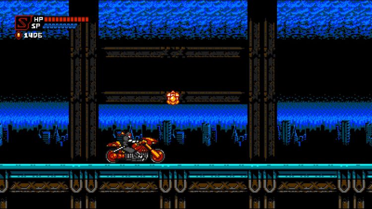 Il punto cruciale di Cyber Shadow è sicuramente il gameplay, e ci permettiamo di dire che è anche il suo punto di forza. Pur basandosi su giochi ormai riconosciuti come portatori di una difficoltà ormai leggendaria, Cyber Shadow (CS da ora) ha dalla sua una modernità ovviamente sconosciuta all’epoca. Ogni movimento di Shadow sarà ultra-reattivo, ogni salto sarà immediato e ogni fendente sarà istantaneo. Questo tratto sarà fondamentale nelle sezioni più avanzate del gioco, dove saranno richieste capacità di coordinazione piuttosto alte. Non solo, il salto di Shadow avrà la caratteristica di poter essere guidato: Saltando verso una determinata direzione avrete la capacità di voltarvi e colpire in un’altra direzione, contribuendo al ritmo di gioco generale e al flow del livello. Come dicevamo prima però, CS non si limita a questo. Durante i livelli saranno disseminati svariati checkpoint che oltre a rimpinguare la salute di Shadow potranno essere potenziati per elargire al giocatore anche altri bonus, come un restock dell’indicatore Special (così da poter utilizzare Shuriken, palle di fuoco et similia, dopo averle sbloccate) e power-up per l’attacco con katana del protagonista. Questi potenziamenti si potranno attivare collezionando i vari globi di energia disseminati per il livello, e toccherà al giocatore decidere se utilizzarli o meno. State avanzando spediti e senza particolari difficoltà? Conservateli. State iniziando a sudare freddo e avete il sospetto che un boss sia vicino? Potenziate il check-point.