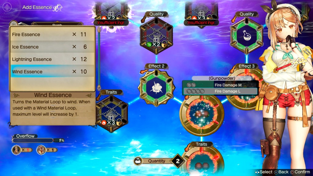 Essendo la serie Atelier basata sull’Alchimia, il leitmotif del tutto sarà legato a filo doppio con il raccogliere ingredienti e componenti per il mondo di gioco, e sul sintetizzarli per creare artefatti ancora più potenti, siano essi armi, oggetti curativi o di attacco, attrezzi per l’esplorazione o per la raccolta di ingredienti… chi più ne ha, più ne metta. Anzi, senza tanto girarci attorno, sappiate che in Ryza 2 (e in tutti gli altri capitoli, a dire il vero) dovrete fondamentalmente sintetizzare qualunque cosa, un fatto questo che renderà il dover effettuare spedizioni in cerca di ingredienti una costante del gameplay. Per quanto interessante e versatile, siamo ben consci che non tutti i giocatori potrebbero apprezzare una scelta simile. E’ oggettivamente una questione di gusti personali. Sicuramente il ritmo di gioco rilassato di Ryza 2 agevola questa meccanica, ma è anche vero che spesso l’intero gioco verrà bloccato sui suoi passi dal non avere la possibilità di sintetizzare l’oggetto XYZ necessario a proseguire la trama.