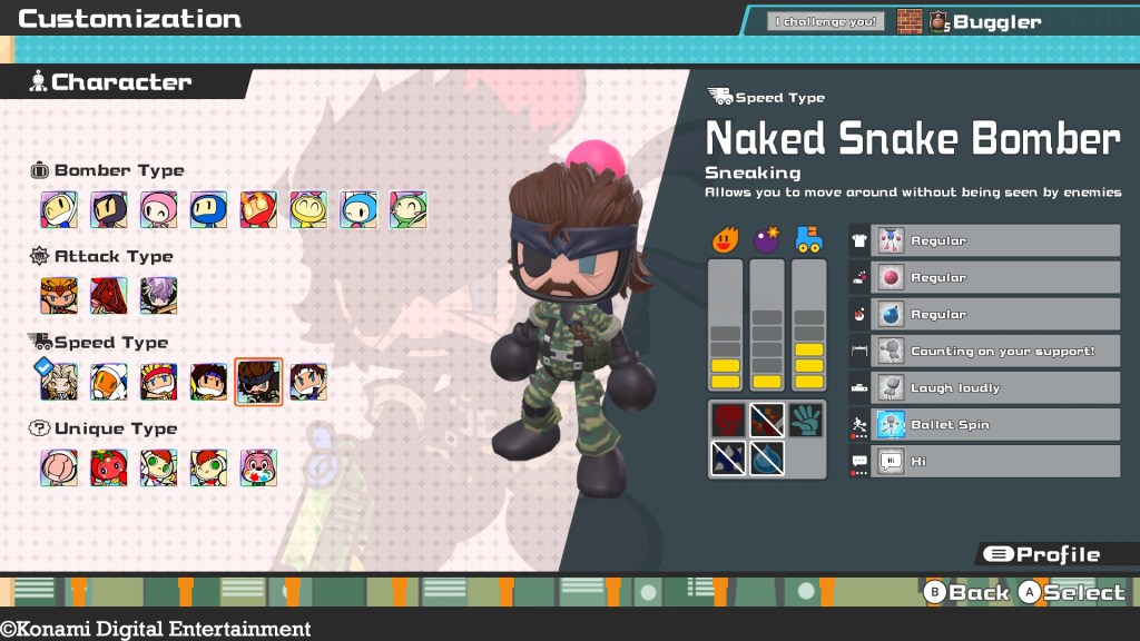 La vera attrattiva del Premium Pack è la possibilità di poter utilizzare i 14 personaggi extra provenienti dai giochi di maggior successo di Konami tra cui: 2 versioni di Snake dalla saga di Metal Gear, Alucard, Richter e Simon Belmont da quella di Castlevania, ed ancora Pyramid Head e l’infermiera da Silent Hill, per citarne alcuni. Sappiate che ognuno di questi personaggi extra sarà in possesso di abilità speciali che lo renderanno estremamente differente da utilizzare rispetto agli altri. Questo inoltre porterà il numero complessivo di personaggi selezionabili ad un soddisfacente 24, suddivisi in 4 categorie: 8 personaggi bomber, 3 attaccanti, 7 veloci e 6 unici.