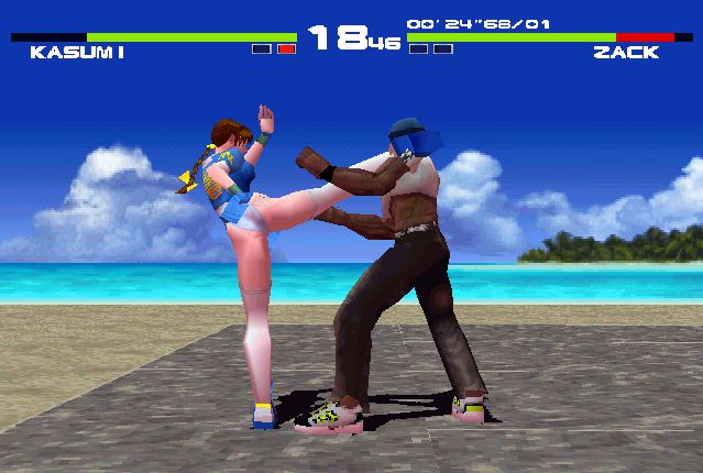 Non siamo comunque qui per parlare delle, pur notevoli, prodezze grafiche del gioco di Team Ninja. La vera “novità” rispetto ai capitoli più recenti, è da ricercarsi nel gameplay. DOA1 infatti è, pad alla mano, un gioco estremamente differente rispetto a quello in cui si è trasformato a partire dal secondo capitolo (PS2, 2000) e in cui si è progressivamente evoluto fino a raggiungere il recente Dead Or Alive 6 (2019). Laddove gli ultimi capitoli sono titoli votati principalmente all’attacco, che premiano la capacità del giocatore di prodursi in mix-ups, 50-50s e applicare pressure costante agli avversari, il primo Dead Or Alive é un gioco estremamente differente, più lento, più ragionato, addirittura più tecnico se vogliamo, cosa che lo rende paradossalmente più simile, complice anche lo schema a tre tasti (P, K, G) a un titolo della serie Virtua Fighter.