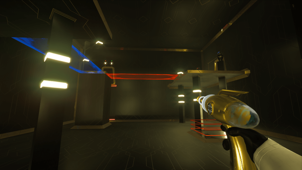 Gli enigmi di Faraday Protocol sono uno strano ibrido, in quanto vi sembreranno sia familiari che originali. Vedendoli al lavoro è chiaro cosa intendo, FP vi farà muovere da una stanza all’altra attraverso un grande ziggurat, sbloccando nuove aree da esplorare mentre risolvete enigmi. Finora, tutto estremamente familiare. I puzzle si svilupperanno rapidamente in complessità anche se il concetto dietro ognuno rimarrà lo stesso, in quanto dovrete abbinare i simboli ruotando manopole o premendo i pulsanti, oppure assorbendo luci colorate diverse per sbloccare varie porte o collegare le sezioni tra loro. All’inizio vi verrà presentata l’idea di assorbire la luce usando una pistola trovata durante i vostri viaggi, aspirando la luce da piccole statue arancioni o blu prima di spararla per attivare porte o collegare determinati elementi insieme. Il concetto c’è, ed è di facile assimilazione: La pistola può contenere solo una carica alla volta indipendentemente dal colore, le statue arancioni possono contenere una carica arancione e le statue blu una carica blu. Semplice no?