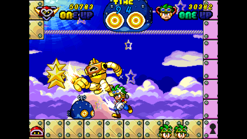 Clock Work Aquario, diciamocelo chiaro e tondo, non è un titolo lunghissimo, e potrà essere completato comodamente in una singola sessione. Questa è, come per altre componenti del titolo, una diretta conseguenza della sua natura “da sala giochi”, ma fortunatamente ININ ha pensato anche ad un rimedio. Numerose saranno infatti le modalità disponibili, da diversi livelli di difficoltà a simpatiche distrazioni come un minigioco (giocabile solamente con un secondo giocatore), così come numerosissime variabili estetiche come filtri CRT, scanlines, ecc. che tanto vanno di moda in queste riedizioni.