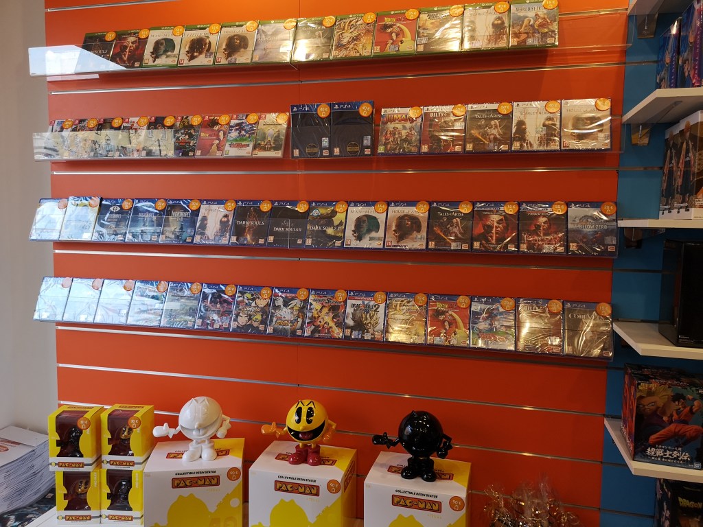 L’ingresso dello Store, situato in una zona centralissima, direttamente sui Navigli.Merchandising a tema Pac-Man (la mascotte di Namco), lo scorso anno si celebrava il 40° anniversario!Altro merchandise legato all’iconica “Pallina Gialla” ed alla sua compagna, Ms. Pac-ManL’ingresso dello store. Si possono vedere i tablet da cui ottenere informazioni sui titoli Bandai Namco disponibili. Nella vetrinetta, alcune delle figures proposte: si notano Goku da Dragon Ball, e Nezuko e Tanjiro da Kimetsu no Yaiba.Un dettaglio della vetrina menzionata sopra: Goku, Gogeta, Piccolo, Tenshinhan ed altri (tra cui Rei Ayanami e Asuka Soryu Langley da Neon Genesis Evangelion) sono disposti in bella mostra. Incredibile la qualità delle figures Banpresto,Il lato del negozio opposto a quello con i tablet di selezione. Banpresto mostra le sue figures relative a One Piece, Dragon Ball, My Hero Academia e Kimetsu No Yaiba.Dettaglio di un espositore. Il piano superiore è dedicato a Kimetsu no Yaiba e One Piece, mentre al piano inferiore troviamo Dragon Ball e tre statue, sempre dedicate a One Piece, in tiratura limitata.Lo spazio dedicato all’ Ichibankuji, popolare gioco a premi arrivato dal giappone. Impossibile perdere! Qui la nostra Monica (IG: @Yunaeko) porge a Sara (IG: labananatutu) il biglietto estratto. Tra i premi, impossibile non menzionare le bellissime action figures dedicate a Kimetsu no Yaiba. Tra l’altro, non è possibile acquistarle singolarmente!Materiale promozionale BanprestoGirando l’angolo si entra nella seconda metà del negozio. Qui lo spazio dedicato ai popolarissimi Gashapon. Menzione di nota per la collaborazione Sanryo/Gundam. Presenti anche Dragon Ball, Pac-Man ed altri!La sempre meravigliosa statua dedicata ad Elden Ring, il gioco di From Software (Dark Souls) in uscita nel 2022. CLICCANDO QUI potete leggere la nostra anteprima.L’area gaming, dove è possibile provare sia i classici che le ultime novità Bandai Namco. Potete notare Tales of Arise, stupendo JRPG che abbiamo recensito poco tempo fa. CLICCATE QUI per l’articolo. I giochi vengono cambiati spesso, quindi non fermatevi a una sola visita!Immancabili i fantasmini di Pac-Man. Qui Inky riposa sopra Blinky.I titoli in vendita: nel nostro Archivio troverete molte recensioni legate ai titoli esposti! Nella fila superiore si vede la linea Xbox, poco sotto quelle dedicate a Switch e PlayStation 5, mentre le ultime due file sono dedicate a PlayStation 4. Si notino anche le 3 statue celebrative per il 40° Anniversario di Pac-Man.L’area finale del negozio, tra vetrine, gadgets, videogames, la linea Kids, i Tamagotchi, le figures di QPosket e tanto altro!