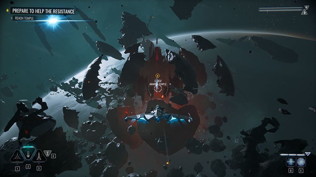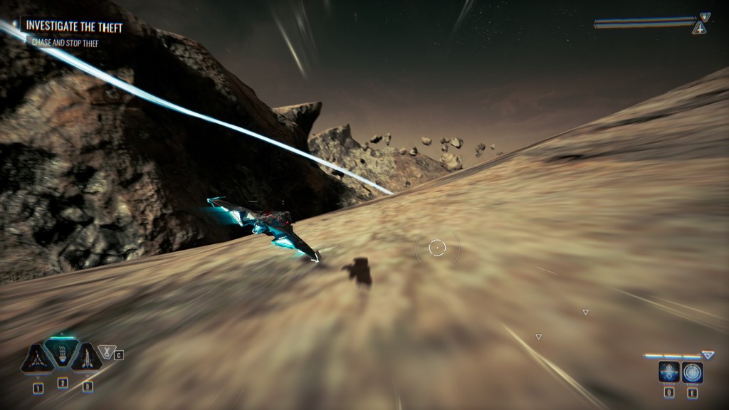 Inizierete aiutando una comunità di minatori con cui Nara ha stretto amicizia, tenendoli all’oscuro del proprio passato. Li aiuta con cose come il salvataggio e la lotta ai pirati, e apparentemente tutti sono troppo educati per chiedere degli strani tatuaggi sulla testa della bella pilota. Così lontano nello spazio, chi non ha incontrato qualcuno con le scritture tatuate sul viso? La nave che utilizzerete all’inizio sarà goffa e lenta, ma i nemici rimarranno facili da eliminare. Non si controlla male ma è troppo semplicistica per essere eccitante. Puntate i vostri cannoni contro i cattivi e sparate. Anche con scelte di dialogo e missioni opzionali sparse, è un inizio poco interessante. Poi – e chi l’avrebbe mai detto che sarebbe successo – il culto torna a farsi vedere: Mentre The Circle continua la sua conquista attraverso lo spazio, Nara è costretta a riprendere i suoi vecchi modi e affrontarli. Qui finalmente il gioco inizia a girare a pieno regime.
