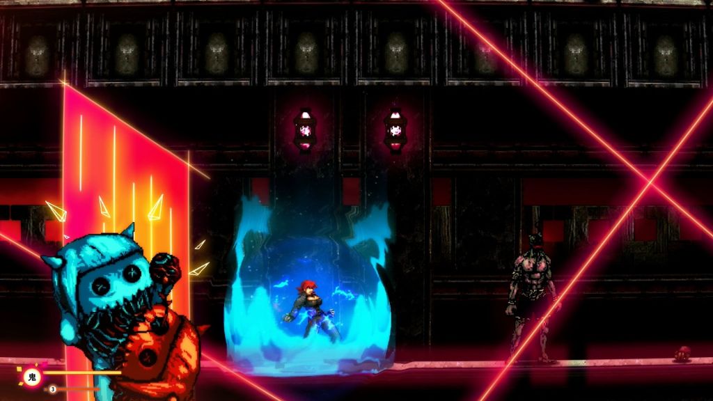 E con nostra estrema delizia, si, ci avevamo visto giusto. Demoniaca é un Metroidvania con meccaniche prese direttamente dai fighting games, con combo, mosse speciali e quant’altro e la vera sorpresa é che, per qualche motivo, il tutto funziona! Non mettiamo il carro davanti ai buoi, ad ogni modo, ed andiamo come di consueto ad esaminare la trama che farà da starting-point per le vicende di questo Demoniaca. Il gioco racconta la storia di una donna che perde tutto quando i demoni bruciano il suo villaggio nella loro missione di ricostruire la Torre di Babele. Quindi, mossa dalla rabbia e dal desiderio di vendetta, dopo essersi ricucita (da sola!) alla bell’e meglio ed aver scoperto che il suo sangue é stato contaminato da quello demoniaco, si lancia all’inseguimento dei demoni, mettendo piede nella terrificante Torre di Babele. Lo ammettiamo, come preambolo non é sicuramente il più “fresco” che abbiamo visto, ma cosa può esserlo, ai giorni nostri, specialmente se si è videogiocatori con qualche primavera in più sulle spalle? Cionondimeno, abbiamo apprezzato il setting di questo Demoniaca, tematicamente appropriato e decisamente in grado di rendere giustizia ai concetti introdotti nel gioco.