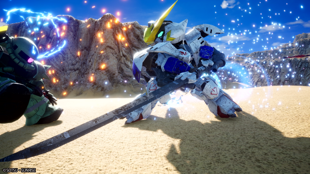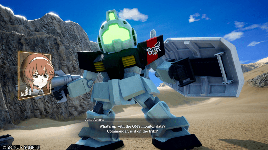 Innanzitutto vediamo la storia dietro al titolo, perché fidatevi, cercare di riunire tutte le saghe e relativi spin-off relativi a Gundam sotto ad un unico ombrello è una impresa quantomeno titanica, borderline impossibile. Come risolvere quindi il problema? Semplice, realizzando un ulteriore arco narrativo che vada a toccare tutti i momenti più salienti degli ormai più di quarant’anni dedicati ad Amuro Rey, Char Aznable e compagnia. Nello specifico, la storia dietro a SDGBA ruoterà attorno a una sorta di realtà virtuale in cui le storie di Gundam vengono registrate e archiviate. Giocando nei panni di un pilota VR senza volto, finirete intrappolati nel database e, insieme a Juno, il vostro ufficiale operativo, e una IA particolarmente intelligente soprannominata Sakura Slash, avrete il compito di riparare gruppi di dati corrotti per garantire il corretto continuum spaziotemporale ed eventualmente la vostra fuga da questo universo virtuale. Naturalmente, questo significherà scendere sui campi di battaglia attraverso un sacco di linee temporali diverse e mettere a fil di spada migliaia di simpatici mobile suit.