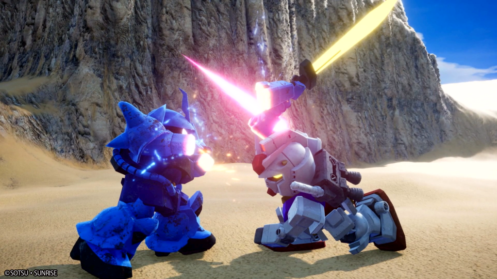 Tirando le somme, al di là di questo piccolo inconveniente e del fatto che gli effetti particellari di raggi, esplosioni, sabbia e quant’altro spesso rendano veramente difficile orientarsi sul campo di battaglia (capiamo la spettacolarità, ma forse sarebbe meglio fare uscire una patch e abbassare leggermente il tutto, che ne dite Bandai Namco e Artdink?), SD Gundam Battle Assault è un titolo davvero divertente, che ci ha convinto. Sarà il sistema di combattimento semplice e ben strutturato, sarà la smania del vedere e collezionare tutti i tipi di Gundam, sarà quello che volete, ma SDGBA ci sentiamo di consigliarlo a tutti i nostri lettori.