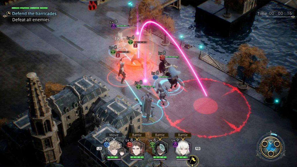 Veniamo ora al gameplay: The DioField Chronicle prende il classico formato RPG tattico e gli dà una leggera svolta. Addio ai quadrati o gli esagoni per mostrare fino a che punto possono spostarsi i personaggi, poiché le battaglie si svolgono principalmente in tempo reale, con l’azione che si interrompe solo quando i giocatori impartiscono comandi alle loro unità. Una volta posizionati, continueranno ad attaccare i nemici che si trovano nel loro raggio fino a quando non verrà loro detto di fare qualcos’altro. È una svolta soddisfacente alla consueta gestione delle unità che di solito avviene nei giochi di ruolo tattici, rendendo le battaglie più caotiche rispetto alla maggior parte dei giochi del genere. Non è una rivoluzione completa di ciò che ha funzionato prima, ma è una divertente modifica allo standard, che va ad implicare che i giocatori debbano tenere d’occhio in maniera molto più proattiva la salute e la posizione dei loro personaggi mentre le battaglia infuria. I personaggi saranno disponibili in quattro classi, anche se equipaggiamenti e build differenti possono influenzare il modo in cui si comportano in battaglia. I soldati possono usare i pugnali per essere più simili a ladri, asce per infliggere gravi danni e stati ai nemici, o spada e uno scudo per fungere da tank. Esistono build simili per ogni classe, ma mai al punto di non riuscire a gestire le vostre risorse o tattiche. Abbiamo trovato il sistema di gestione del vostro party decisamente interessante e versatile.