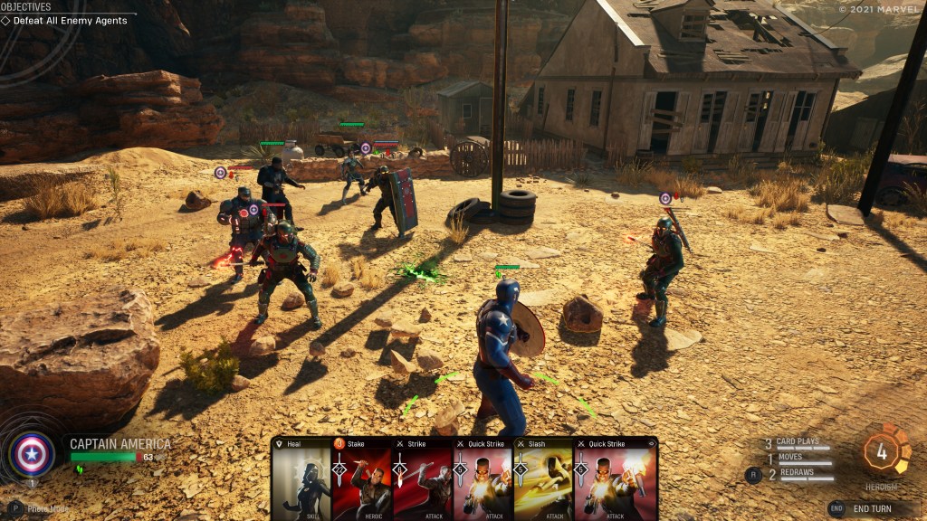 Per quanto le mappe su cui combatterete saranno costantemente piccole e piatte con solo una manciata di oggetti contro cui poter scaraventare i nemici, saranno controbilanciate da un discreto numero di ambientazioni per mantenere alta la diversità visiva e una buona varietà di obiettivi oltre alla semplice sconfitta tutti i nemici. Troveremo mappe con pericoli che vi costringeranno a mantenere la squadra in movimento per evitare zone pericolose, nemici con scudi che devono essere sfondati per raggiungere un bersaglio, VIP Hydra che devono essere catturati, bombe che devono essere disattivate e così via. Potrete anche aggiungere un pizzico di sale durante le battaglie più semplici optando per obiettivi secondari in cui dovrete, ad esempio, utilizzare un personaggio specifico per infliggere 250 danni entro due turni. Tra questi fattori e occasionali incontri con boss come Venom, Sabertooth, Crossbones e altri, ognuno con le proprie meccaniche uniche, le missioni avevano sempre un buon grado di varietà, abbastanza da non risultare ripetitive.
