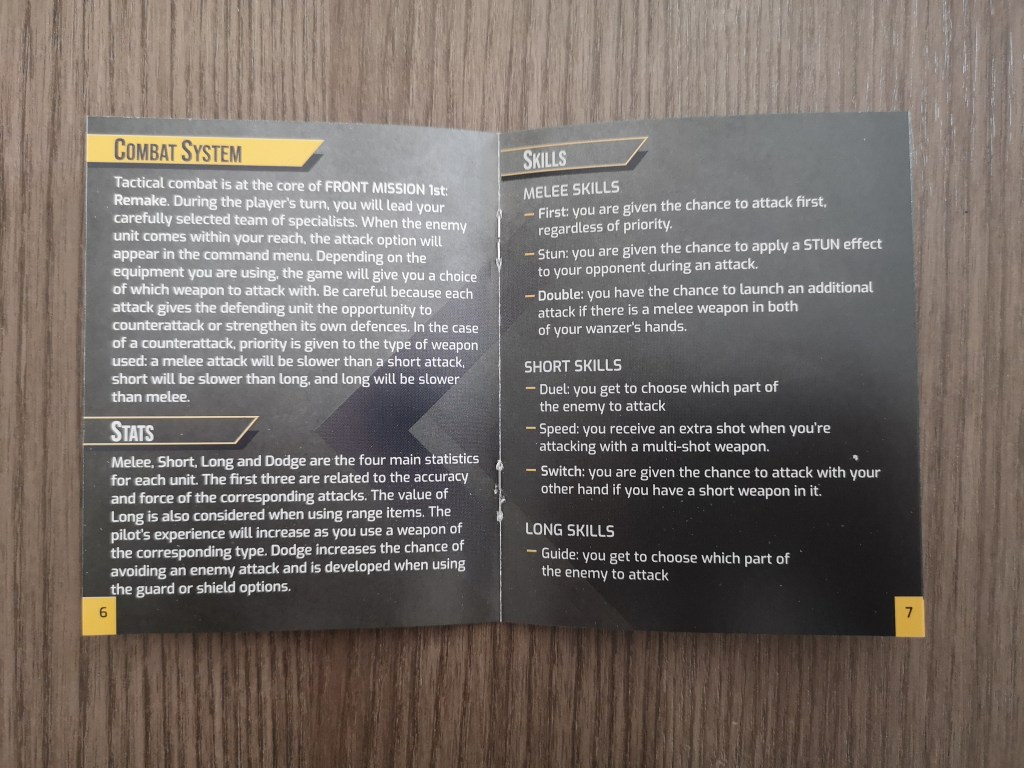 – Guida: un compendio di 16 pagine di conoscenza sul mondo di Front Mission. Acquisisci familiarità con le meccaniche di gioco e i personaggi che incontrerai durante il gioco.