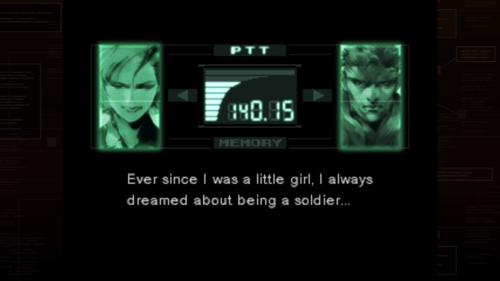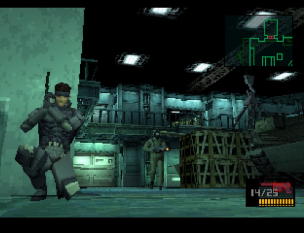 Ora finalmente possiamo parlare di quello che ci interessa, ovvero le tre meraviglie contenute nella MGS Collection. Abbiamo passato un numero difficilmente quantificabile di ore con ognuno di questi titoli, al punto di ricordarci esattamente i vari dialoghi o, come nel caso di MGS 1, farci quasi commuovere nel momento in cui è partito il Title Theme o quando i nostri occhi hanno visto la grafica del titolo. Attenzione però, la grafica datata non va vista come un punto negativo, anzi, è intrinseca all’esperienza. Forse è nostalgia, ma Metal Gear Solid non ha perso nulla della sua atmosfera nei 25 anni trascorsi dalla sua uscita. Dalla voce di apertura di “The Best is Yet to Come” alla scoperta delle sanguinose conseguenze dell’opera di Gray Fox, MGS è pieno di momenti memorabili che trascendono i limiti del suo hardware originale. È comunque un gioco eccellente da giocare, aiutato in qualche modo dall’uso delle telecamere fisse. Questa decisione non solo contribuisce allo stile cinematografico del gioco, consentendo di inquadrare alcune scene con un occhio alla cinematografia, ma evita anche gli scomodi controlli della telecamera che affliggevano molti dei primi giochi 3D. Nel 1998, gli sviluppatori non avevano ancora capito come gestire il controllo manuale della telecamera perché non tutti i controller avevano due stick. Molti di questi giochi sono troppo complicati da giocare al giorno d’oggi, ma MGS non ha questo problema. E’ vero, magari il combattimento è ancora un po’ complicato perché non esiste una mira manuale e correre e sparare richiede di tenere premuti due pulsanti contemporaneamente, decisamente non l’opzione più intuitiva, ma è comunque tutto gestibile.