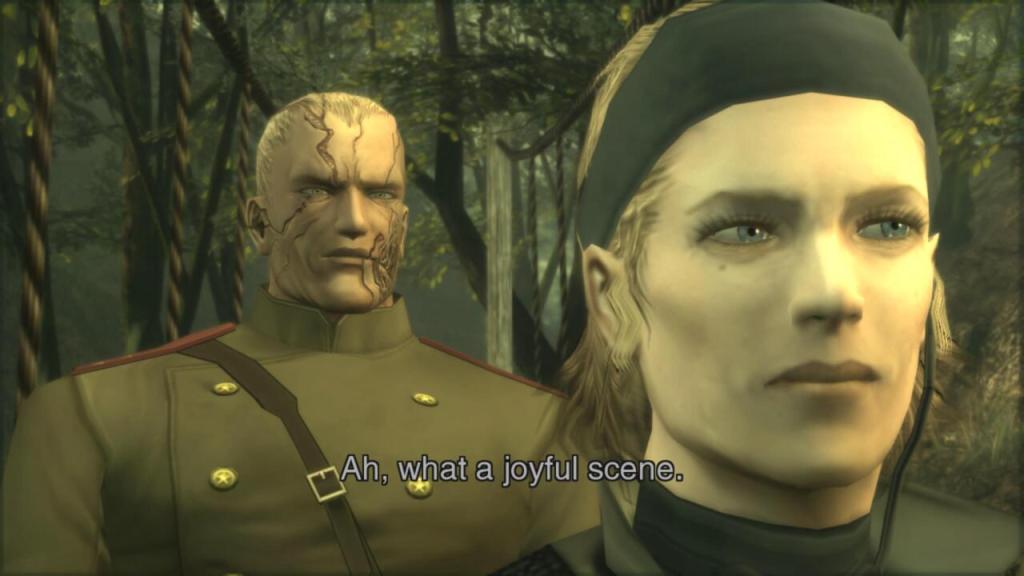 C’è poi Metal Gear Solid 3: Snake Eater, per tanti l’apice della saga diretta da Hideo Kojima. MGS3 fu spiazzante, per usare un eufemismo. Un prequel della saga ambientato negli anni ’60, che implementava un sistema di ferite, di cure, di sostentamento e soprattutto una intera sub-meccanica dedicata alle mimetiche. MGS3 è anche dove la serie di MGS va a rincarare la dose in termini di stranezze concettual/narrative: dall’introduzione in MGS2 di un vampiro apparentemente immortale (che tuttavia si è guadagnato il nome di Vamp perché è bisessuale) ed un cattivo posseduto da… un braccio a un fantasma che per essere sconfitto vi farà camminare lungo un fiume ultraterreno ed essere perseguitati da tutte le persone che avete ucciso e tutta una serie di altri fenomeni da baraccone ognuno dotato di stranezze piuttosto incredibili. Con questa assurdità, la serie è diventata anche molto più prolissa, approfondendo lunghe tangenti espositive, spesso spiegando fin troppo dettagliatamente concetti semplici e virando selvaggiamente tra intrighi politici, fantascienza, melodramma e umorismo. Lo stile eclettico di Kojima fa parte del fascino della serie, ma ci sono momenti in cui é semplicemente un po’ troppo.