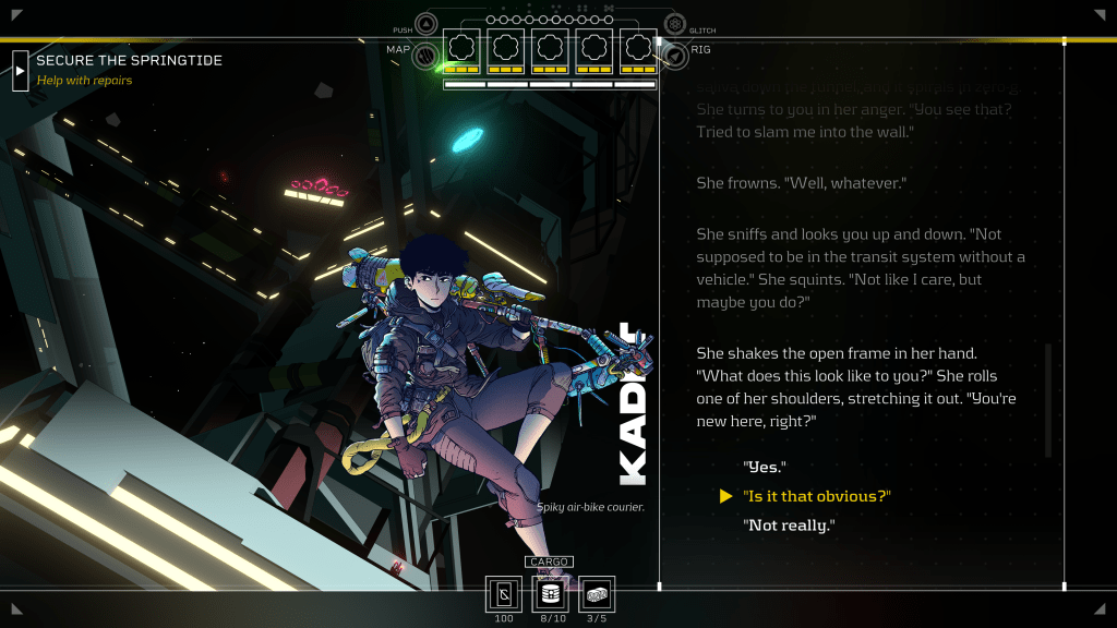 Quasi ogni missione (chiamata “Drive” qui) implica la creazione di connessioni e la costruzione di relazioni con le persone. La costruzione di una comunità era un valore fondamentale della trama originale, e Starward Vector ribadisce questo messaggio nel suo viaggio che attraversa l’intero sistema, sia nella storia che nel gameplay. È un messaggio che appare ancora più importante oggigiorno: la solidarietà tra persone con idee simili, l’ingegno collettivo e la volontà di lottare per il cambiamento possono aiutare a superare i limiti di classe e di risorse quando ci si trova di fronte a ostacoli apparentemente impossibili.