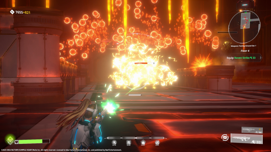 A prima vista, sembra che Scar-Lead Salvation abbia la stoffa giusta. Willow è un personaggio fantastico, il suo gameplay in stile bullet-hell in 3a persona è un espediente efficace e gli elementi fondamentali del gameplay sono solidi e fluidi. Corre velocissima, spara bene, salta in alto, ha un fantastico sistema di schivata/scatto/immagine speculare e può letteralmente colpire i proiettili a pugni e assorbirne la potenza per un’esplosione di invulnerabilità. Non è fantastico? Correre in giro a sparare ai robot è davvero divertente e dimostra che il trio di sviluppatori di questo gioco (Idea Factory, Compile Heart e il meno noto Neilo) ha superato le aspettative creando uno sparatutto dal nulla. Inoltre, avere un personaggio AI che si comporta come un pazzo fastidioso e inutile è perfetto per il momento. Tutti i complimenti del mondo a qualcuno che lavora nei videogiochi e si oppone a questa assurdità in cui stiamo annegando. Ricordatevi, una IA non sostituirà MAI E POI MAI l’inventiva, la creatività e l’ingegno umano. MAI.