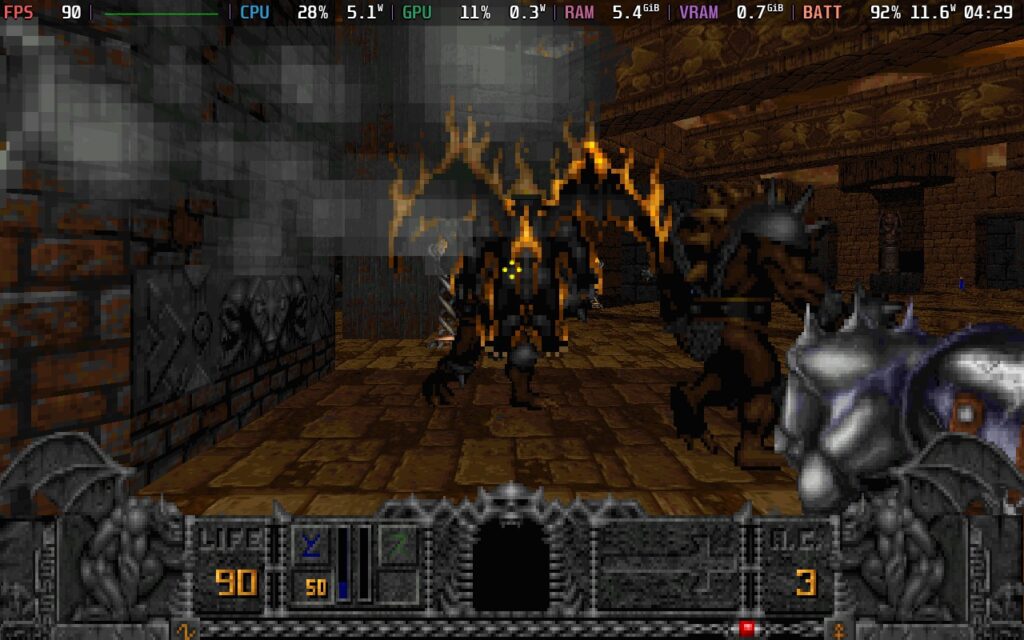 La collezione si apre con Heretic, il capitolo che più strizza l’occhio a Doom. Vestirete i panni di un potente mago elfo, Corvus, impegnato in una crociata contro il malvagio signore dei serpenti, D’Sparil. Il gameplay è immediatamente familiare: un’azione a rotta di collo, nemici che sparano proiettili a velocità folle e una colonna sonora che vi spinge a correre in avanti. Ma Heretic non è un semplice clone. È stato uno dei primi FPS a introdurre un inventario, un’aggiunta rivoluzionaria per l’epoca che vi permetteva di utilizzare oggetti magici come anelli dell’invisibilità, pozioni di volo o artefatti in grado di trasformare i nemici in innocui polli. È stato anche uno dei primi a introdurre una rudimentale “mira verticale” che, pur non essendo un vero e proprio sistema 3D, aggiungeva un nuovo strato di profondità al combattimento. La collezione include non solo il gioco base ma anche l’espansione Shadow of the Serpent Riders e, per la prima volta, un nuovo episodio inedito, Heretic: Faith Renewed, creato appositamente per questa edizione.