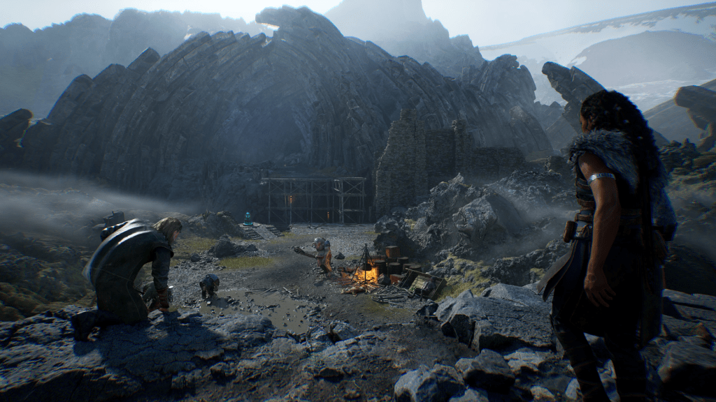 La prima cosa che ci colpirà di Echoes of the End è la sua incredibile, quasi palpabile, atmosfera. L’ambientazione, ispirata ai paesaggi selvaggi e mozzafiato dell’Islanda, non è solo uno sfondo, ma un vero e proprio protagonista. Dalle distese di lava solidificata, illuminate da un cielo etereo, ai picchi montuosi ricoperti di neve e muschio, ogni scenario è stato curato con una passione maniacale che rende l’esplorazione una gioia per i nostri occhi. Il world-building è solido e convincente, con una lore ricca di miti e leggende che scopriremo gradualmente. L’ambientazione non è solo un omaggio alla terra natale del team, ma un elemento narrativo e visivo che permea l’intera esperienza.