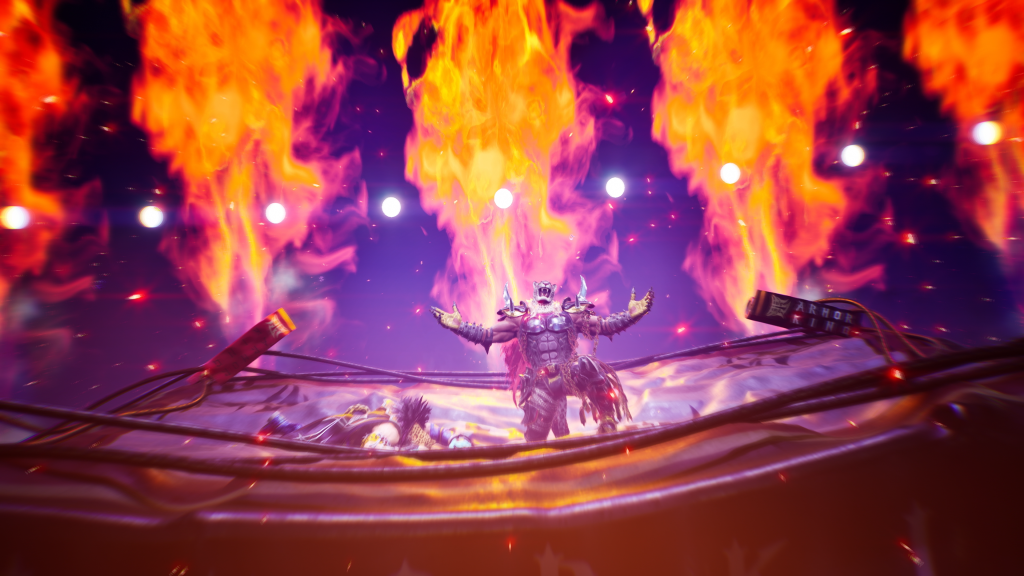 Visivamente, Armor King ha sempre avuto un’estetica potente e sobria, giocando sul cliché del wrestler mascherato e vendicativo. In TEKKEN 8, il nuovo completo predefinito di Armor King consiste in un corpetto tattico o una giacca che richiama un corpetto antiproiettile indossato sopra la sua tuta da wrestling. Questo corpetto è nero e coperto da pannelli segmentati, cinghie e fibbie che ne accentuano la natura da combattente mercenario, non limitato al ring. Sotto, il suo abito è nero e grigio, con rinforzi che sembrano armature leggere su gambe e fianchi. La sua iconica maschera da giaguaro è rossa e nera, arricchita da una criniera di fuoco o capelli rossi e metallici che fuoriesce dalla parte superiore, un dettaglio che accentua la sua aura minacciosa e la sua rabbia interiore, perfettamente in linea con il Heat System del gioco. Indossa pesanti guanti e stivali con protezioni rigide su avambracci e stinchi. Un cambiamento che ne esalta la brutalità, rendendolo più un combattente di strada che un semplice wrestler, non trovate?