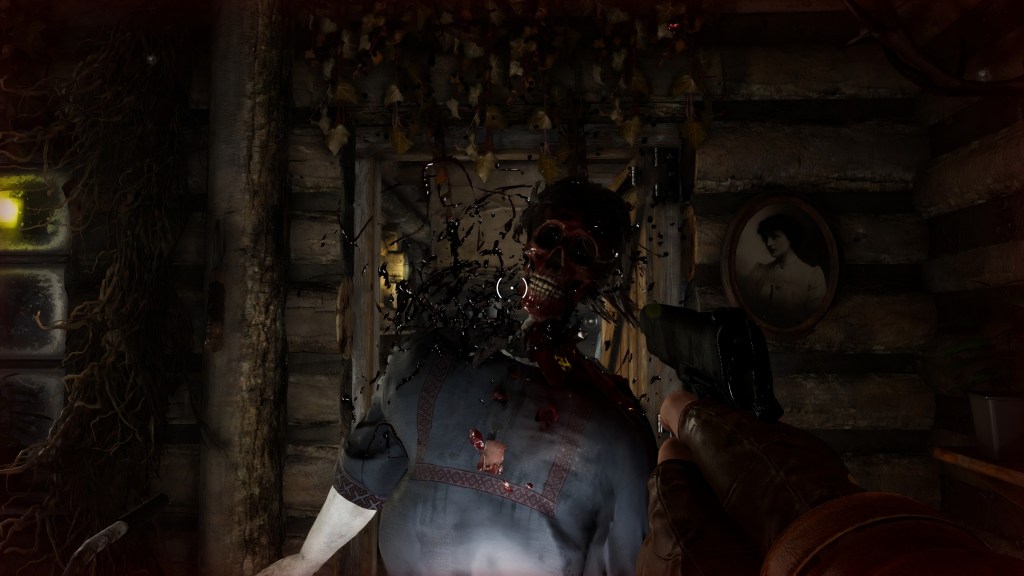 Tuttavia, bisogna riconoscere un altro merito tecnico a Ebola Village: il sistema di gore e smembramento. Quando Maria riesce finalmente a colpire un nemico, l’effetto visivo è sorprendentemente curato. I proiettili staccano pezzi di carne, rivelano la struttura ossea sottostante e causano reazioni fisiche nei nemici che risultano credibili e viscerali. Vedere uno zombie che perde parte del cranio o che continua a trascinarsi dopo aver perso un arto è uno dei pochi momenti in cui il gioco sembra avere una sua dignità tecnica. Questo sistema, unito a una buona gestione delle particelle di sangue, regala scontri che hanno un feedback fisico soddisfacente, peccato che siano inseriti in un contesto di movimento così legnoso da annullare quasi ogni divertimento.