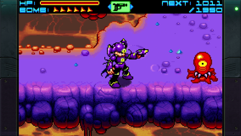 Le fasi a terra rappresentano la colonna vertebrale dell’avventura. In queste sezioni, il giocatore controlla Ian Recker mentre esplora biomi alieni ricchi di pericoli e segreti. L’estetica in pixel art risplende su schermi moderni, mantenendo intatto il fascino dell’era a trentadue bit ma guadagnando in nitidezza e saturazione cromatica. La progressione è scandita dal ritrovamento di strumenti specifici che permettono di accedere a zone precedentemente precluse, seguendo una filosofia di design che ricorda molto da vicino i classici del genere avventura dinamica. Oggetti come lo Scanner, i Krill Boots o le Wings non sono semplici potenziamenti numerici, ma strumenti essenziali che cambiano radicalmente l’interazione con l’ambiente circostante. L’esplorazione non è mai fine a se stessa, poiché ogni angolo dei sei pianeti può nascondere Gun Data fondamentali per potenziare il proprio arsenale bellico.